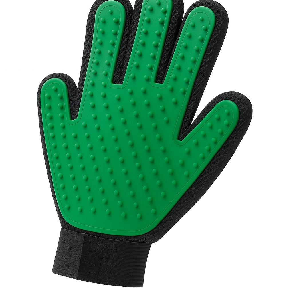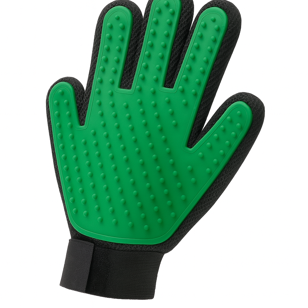 Deze handige verzorgingshandschoen is een must-have voor elk baasje. Dankzij het vijf-vingerontwerp met siliconen nopjes verwijder je moeiteloos losse haren terwijl je jouw hond of kat aait. Het voelt aan als een massage voor je huisdier – en jij houdt je huis schoner.